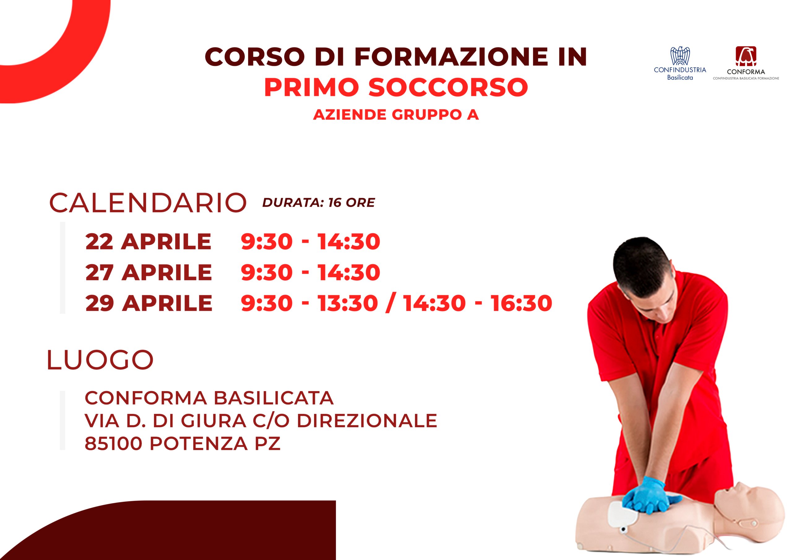 MODALITÀ CORSO: in presenza presso la nostra sede di Potenza, Via Di Giura – Centro Direzionale
